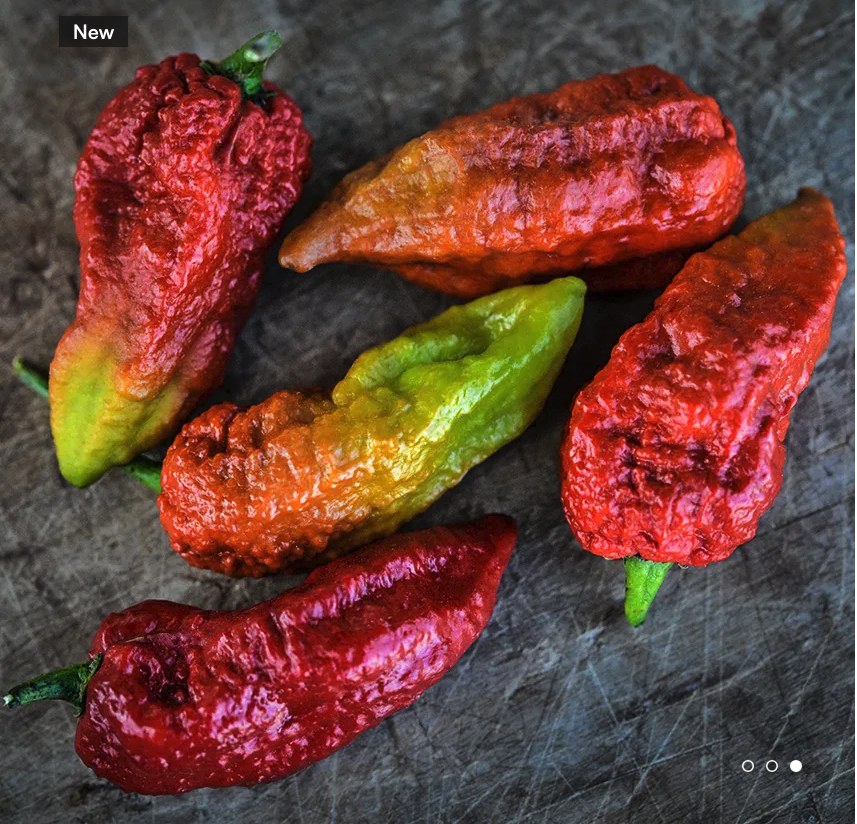 These produce a lot of oil inside the pods and have Scoville rating for the fabulous gnarly looking pods is 650,0000 to 700,000 SHU. This pepper makes excellent sauces and powders